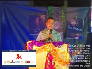 Pesisirnasional.com|Bengkalis – Anggota DPRD Kabupaten Bengkalis Bengkalis, Irmi Syakip Arsalan, S.Sos.M.Si bersama bendahara partai PKB Muhammad Faizal, M.Pd dan anggota lainnya menghadiri kegiatan Nonton Bareng (Nobar) film pendek komunitas Tonges Productions garapan anak Watan Desa Pematang Duku, Kecamatan Bengkalis Kabupaten Bengkalis Riau, Senin (21/04/2025).