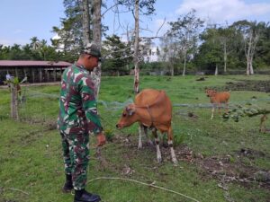 Babinsa Kopda Limbong Rutin Melaksanakan Pemeriksaan PMK Pada Hewan Ternak