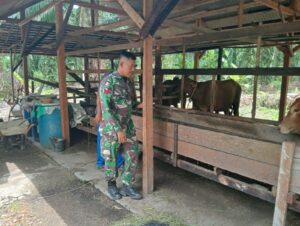 Pesisirnasional.com|Bantan – Babinsa Koramil 01/Bengkalis koptu Dedi Swarman posramil Bantan Melaksanakan Pengecekan Hewan Ternak Dalam Rangka Mencegah Penyakit PMK Pada Hewan Ternak yang bertempat di Desa Bantan Air Kec. Bantan Kab. Bengkalis. Jum’at pukul 10.00 Wib, (3/10/2025).
