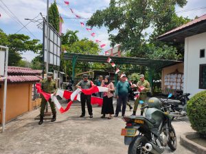 Gotong royong Pemasangan Umbul-umbul di Halaman Kantor Desa