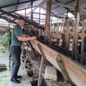 Pesisirnasional.com|Bantan – Babinsa Koramil 01/Bkls Kopda Limbong Anggota Posramil Bantan Melaksanakan pengecekan hewan ternak dalam rangka mencegah penyakit PMK pada hewan ternak yang bertempat di Desa Kembung Baru Kec. Bantan Kab. Bengkalis Senin pukul 10.20 Wib, (21/4/2025).