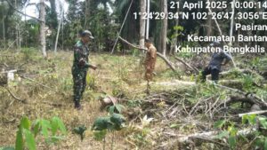 Pesisirnasional.com|Bantan – Babinsa Koramil 01/Bengkalis Sertu Armansah bersama dua orang pernakat desa melaksanakan patroli Karhutla di desa Pasiran Kec. Bantan Kab. Bengkalis Senin pukul 09.30 Wib, (21/4/2025).