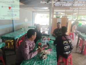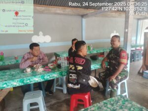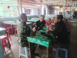 Pesisirnasional.com|Bengkalis – Babinsa Koramil 01/Bengkalis Serda Asnawi melaksanakan kegiatan komsos bersama masyarakat desa Kuala Alam dikampung Pancasila khususnya di Desa Kuala Alam Kec. Bengkalis Kab. Bengkalis. Rabu pukul 08.30 Wib, (24/9/2025).