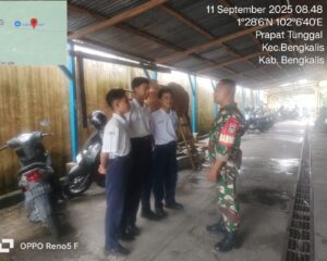 Pesisirmasional.com|Bengkalis – Babinsa Koramil 01/Bengkalis Serda M.H.Gunawan melaksanakan kegiatan komsos bersama masyarakat binaan Desa Prapat Tunggal dikampung Pancasila khususnya di Kec. Bengkalis Kab. Bengkalis. Kamis pukul 09.00 Wib, (11/9/2025).