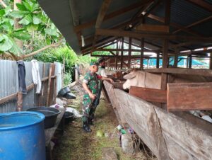 Pesisirnasional.com|Bengkalis – Babinsa Koramil 01/Bkls Serka Raiyen melaksanakan pengecekan hewan ternak dalam rangka mencegah penyakit PMK pada hewan ternak yang bertempat di desa Senderak.