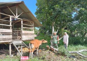 Pesisirnasional.com|Bengkalis – Babinsa Koramil 01/Bengkalis Serka Raiyen melaksanakan pengecekan hewan ternak dalam rangka mencegah penyakit PMK pada hewan ternak yang bertempat di desa Senderak. Kec. Bengkalis Kab. Bengkalis. Jum’at pukul 10.20 Wib, (25/4/2025).