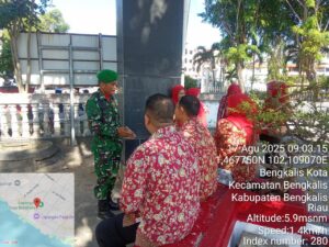 Pesisirnasional.com|Bengkalis – Babinsa Koramil 01/Bengkalis Serka Sinambela melaksanakan kegiatan Komsos dikampung Pancasila di keluarga kota Kec.Bengkalis Kab. Bengkalis. Minggu pukul 10.00 Wib, (17/8/2025).
