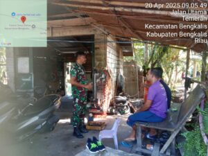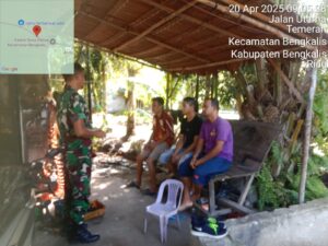 Pesisirnasional.com|Bengkalis – Babinsa Koramil 01/Bengkalis Sertu Amroni melaksanakan kegiatan Komsos dikampung Pancasila khususnya di Desa Damai Kec. Bengkalis Kab. Bengkalis Minggu pukul 08.50 Wib, (20/4/2025).