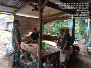 Pesisirnasional.com|Bengkalis – Babinsa Koramil 01/Bengkalis Sertu Amroni melaksanakan kegiatan Komsos dikampung Pancasila khususnya di Desa Penebal Kec. Bengkalis Kab. Bengkalis. Jum’at pukul 08.30 Wib, (16/1/2026).