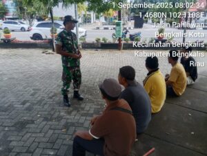 Pesisirnasional.com|Bengkalis – Babinsa Koramil 01/Bengkalis Sertu Amroni melaksanakan kegiatan Komsos dikampung Pancasila khususnya di kelurahan kota Kec. Bengkalis Kab. Bengkalis. Senin pukul 10.00 Wib, (1/9/2025).
