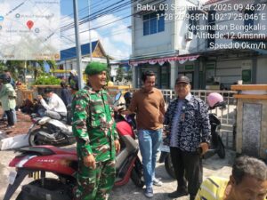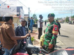 Pesisirnasional.com|Bengkalis – Babinsa Koramil 01/Bengkalis Sertu Mustaqim melaksanakan kegiatan komsos bersama masyarakat binaan Desa Wonosari di Kampung Pancasila khususnya di Kec. Bengkalis Kab. Bengkalis. Rabu pukul 09.30 Wib, (3/9/2025).