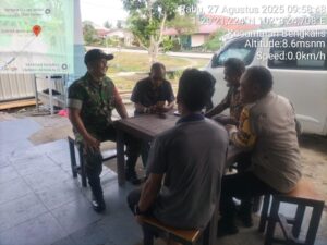 Pesisirnasional.com|Bengkalis – Babinsa Koramil 01/Bengkalis Sertu Mustaqim melaksanakan kegiatan komsos bersama masyarakat binaan Desa Wonosari di Kampung Pancasila khususnya di Kec. Bengkalis Kab. Bengkalis. Rabu pukul 09.30 Wib, (27/8/2025).
