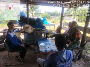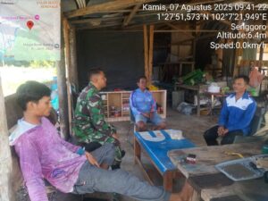 Pesisirnasional.com|Bengkalis – Babinsa Koramil 01/Bengkalis Sertu Mustaqim melaksanakan kegiatan komsos bersama masyarakat binaan Desa Senggoro di Kampung Pancasila khususnya di Kec. Bengkalis Kab. Bengkalis. Kamis pukul 09.00 Wib, (7/8/2015).