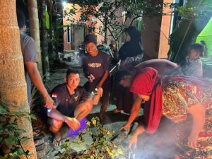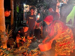Pesisirnasional.com|BATHIN SOLAPAN-Dipimpin Pasiops TMMD Letda. Arh. Rickman Sinaga bersama Bati Bhakti Sertu Tamrin Samosir, acara itu berlangsung hangat. Cairkan suasana, para anggota satgas nampak hanyut bersama orangtua asuh menyalakan bara api untuk membakar alias memanggang ayam dan ikan.