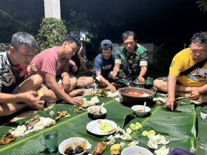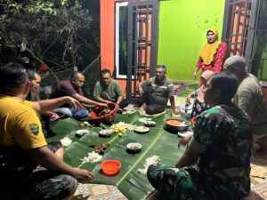 Ada yang sibuk membakar, menghaluskan bumbu, mempersiapkan daun pisang untuk wadah makan bersama, bahkan ada pula yang bernyanyi bersama anak-anak dan remaja setempat. Keheningan malam yang biasa menyelumuti perkampungan di Desa Boncah Mahang itu seketika penuh keramaian berkat kehadiran para prajurit TNI tersebut dalam program TMMD ke-118.