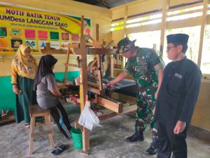 Danramil 01/Bengkalis Anjang Sana Ke Desa Teluk Latak dan melihat Langsung Proses Pekerjaan Pengrajin Tenun Batik di BUMDES Langgam Sako Desa Teluk Latak
