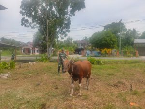 Babinsa Koramil 01/Bkls Sertu Rs. Sitorus melaksanakan Pengecekan hewan ternak dalam rangka mencegah penyakit PMK pada hewan ternak yang bertempat di Desa Pedekik Kec. Bengkalis Kab. Bengkalis.