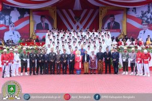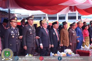 Sebagai Inspektur upacara Bupati Kasmarni dan Komandan Upacara dipercayakan kepada Kapten CPL Farimus Hendriko Danramil 01 Kodim 0303 Bengkalis. Hadir Wakil Bupati Bengkalis Dr. H. Bagus Santoso, anggota DPRD Bengkalis Irmi Syakip Arsalan, Drs. H. Arianto, Firman, dan Hj. Zahraini, Dandim 0303/Bengkalis Letkol Inf Endik Yunia Hermanto, Kapolres Bengkalis AKBP Setyo Bimo Anggoro, Kejari Bengkalis Zainur Arifin Syah, Kakan Kemenag H. Khaidir, Ketua Pengadilan Agama Rahmatullah Ramadan, Sekretaris DPRD Rafiardhi Ikhsan dan tamu undangan lainnya.