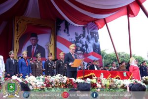 Bengkalis, Humas DPRD – Ketua DPRD Kabupaten Bengkalis H. Khairul Umam bertindak sebagai pembaca teks Proklamasi pada Upacara Peringatan Hari Ulang Tahun (HUT) ke-78 Kemerdekaan Republik Indonesia tahun 2023 di Lapangan Tugu Bengkalis, Kamis (17/08/2023).