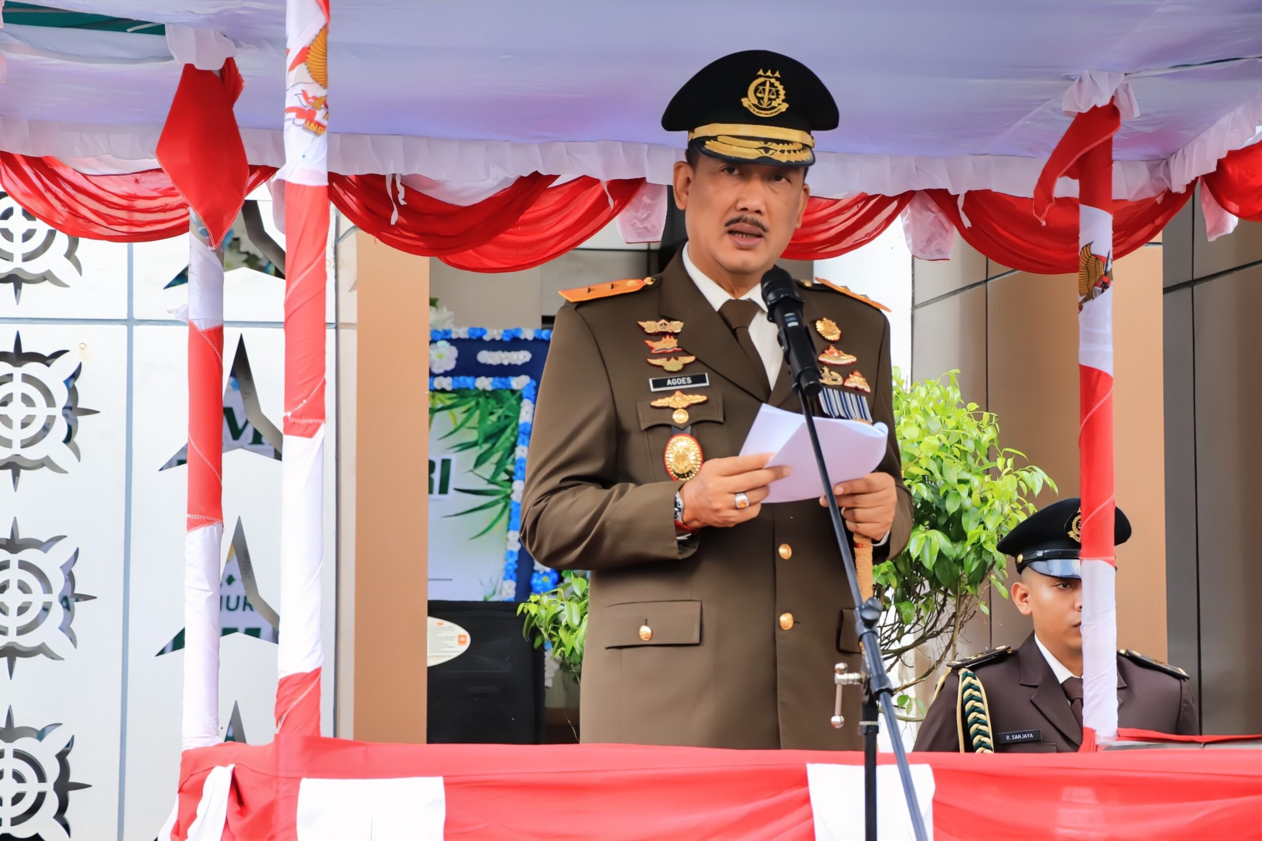 Dalam upacara yang baru pertama kali dilaksanakan tersebut, Kepala Kejaksaan Tinggi Maluku yang membacakan Amanat Jaksa Agung Republik Indonesia, menyampaikan tepat pada hari ini Kejaksaan Republik Indonesia berusia 79 tahun, dimana pada 79 tahun yang lalu Negara Republik Indonesia yang baru berusia 15 (lima belas) hari sejak memproklamirkan Kemerdekaannya, melahirkan Kejaksaan Republik Indonesia dan melantik Meester de Rechten Gatot Taroenamihardja sebagai Jaksa Agung Republik Indonesia pertama yang ditandai dengan dimulainya peran Jaksa Agung dan Kejaksaan dalam mempertahankan Kedaulatan Hukum Indonesia dan juga pembentukan Kabinet Presidensial Pertama lainnya di Indonesia.