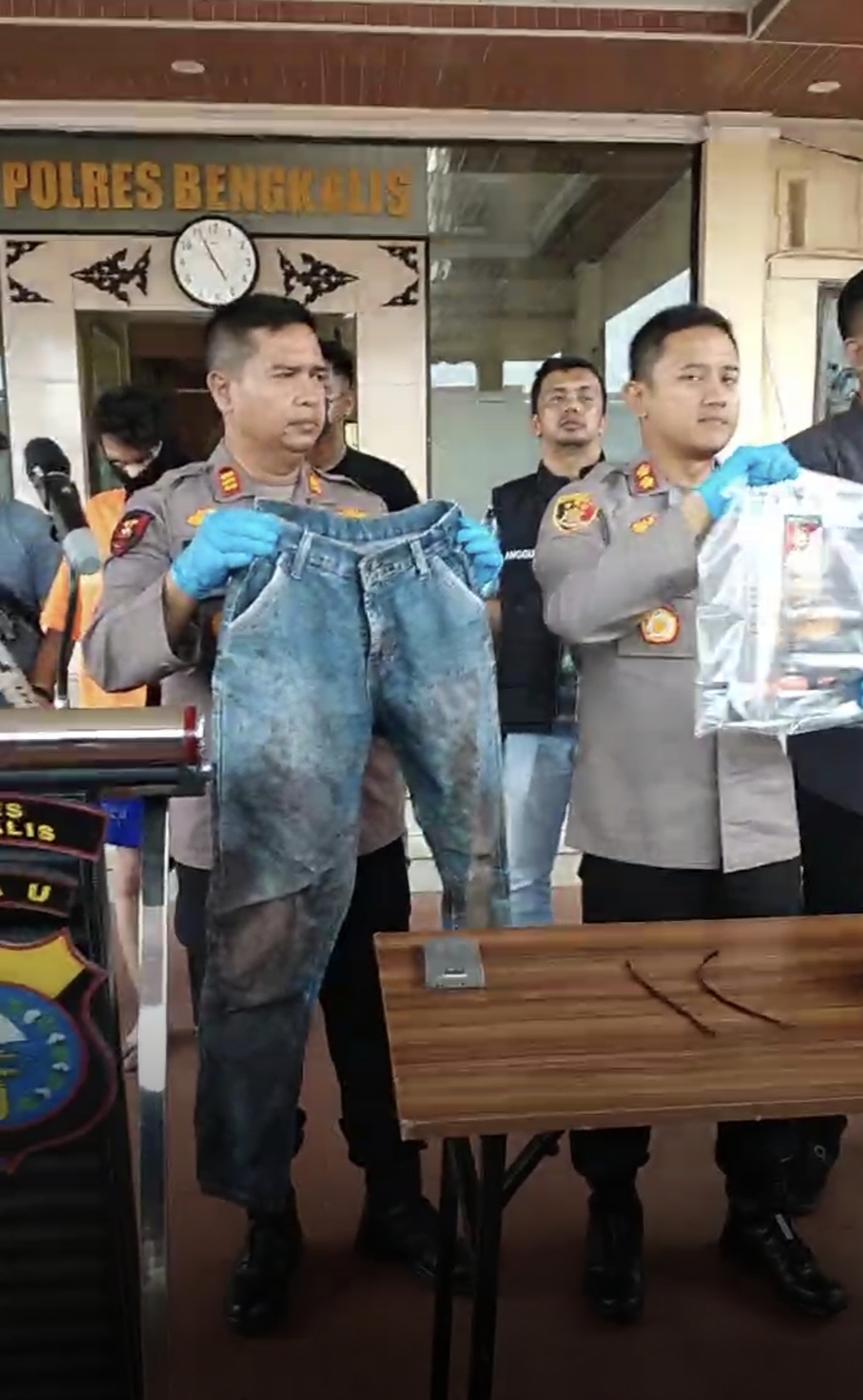 Dari hasil konfrensi Pers yang dilakukan oleh Kapolres Bengkalis AKBP. Setyo Bimo Anggoro, SIK jam 16.30 wib menyampaikan bahwa diduga pelaku berumur 21 tahun yang beralamat di jalan Damon Kelurahan Damon Kecamatan Bengkalis Kabupaten Bengkalis ditangkap dirumah diduga pelaku dan sudah diamankan di tahanan Polres Bengkalis. Semua alat bukti yang ditemukan di TKP maupun tak jauh dari TKP sudah kita amankan. Adapun motif dari diduga pelaku curas tersebut disebabkan masalah ekonomi, karena terlilit hutang pinjaman online ( Pinjol) dan investasi kripto ucap Kapolres. Dan ancaman hukuman dari si pelaku yang diduga tersebut teranacam hukum 20 tahun sampai dengan seumur hidup ucap Kapolres Bengkalis lagi. Dan akhirnya Kapolres Bengkalis menutup konfrensi Pers sore ini dihalaman Markas Polres Bengkalis jalan pertanian Desa Senggoro kecamatan Bengkalis.