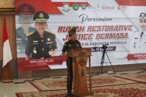 Pesisornasional.com|Bengkalis – Dandim 0303/Bengkalis Letkol Arh Irvan Nurdin, SE.,MM diwakili Kasdim Mayor Arh Sudiyono menghadiri Kunjungan Kerja Kajati Riau Dalam Rangka Peresmian Rumah Restorative Justice Bermasa Pada Desa se-Kabupaten Bengkalis bertempat di Wisma Sri Mahkota Bengkalis Jalan Antara Kec. Bengkalis Kab. Bengkalis Rabu pukul 11.00 Wib, (12/6/2024).