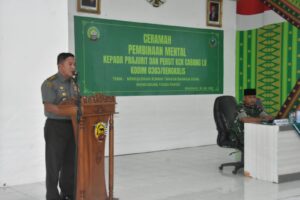 Pesisirnasional.com|Bengkalis – Dandim 0303/Bengkalis Letkol Arh Irvan Nurdin,S.E.,M.M diwakili Kasdim Mayor Inf Suratno menghadiri Ceramah Pembinaan Mental Kepada Prajurit dan Persit KCK Cabang LII Kodim 0303/Bengkalis dengan tema “Mewujudkan Rumah Tangga Bahagia Guna Mendukung Tugas Pokok” bertempat di Aula Kodim 0303/Bengkalis Jalan Batan Senggoro Kec. Bengkalis Kab. Bengkalis. Kamis pukul 14.00 Wib, (8/5/2025).