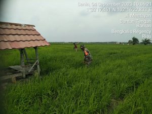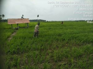 Babinsa Desa Mentayan Serda Amad zamzuri melaksanakan kegiatan perkembangan Hanpangan Kodim 0303/Bengkalis Senin, 4 September 2023 di Desa Mentayan Kecamatan Bantan.