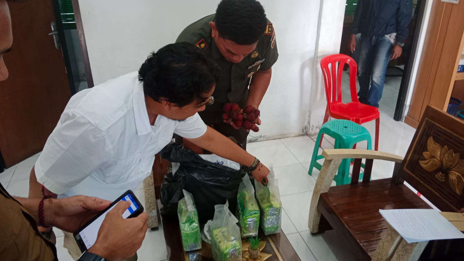 Kemudian pada pukul 09.30 WIB Pasi Intel beserta Unit bergerak menuju lokasi yang dimaksud. Sekira pukul 09.45 WIB rombongan tersebut tiba dan mengamankan paket tersebut beserta kedua saksi menuju kantor Unit Intelijen Kodim 0303 Bengkalis. Tiba di kantor sekira pukul 09.58 WIB, pihaknya bersama para saksi segera memeriksa paket mencurigakan tersebut dan didapati 4 kantong plastik bermerek kemasan Teh China dengan berat (±) 4Kg dan 5 ikat buah rambutan.