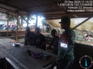 Pesisirnasional.com|Bengkalis – Babinsa Koramil 01/Bengkalis Kopda Aritonang melaksanakan kegiatan komsos bersama masyarakat desa Sungai Alam dikampung Pancasila khususnya di Desa Sungai Alam Kec. Bengkalis Kab. Bengkalis. Senin pukul 08.30 Wib, (29/12/2025).