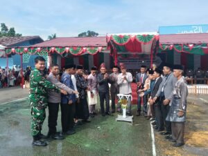 Pesisirnasional.com|Bantan – Danramil 01/ Bengkalis Kapten ARM Yogi Sudarso diwakili Kopda Budi Nursalim Menghadiri Kegiatan Upacara Apel Tahunan Dan Pembukaan Tahun Ajaran Baru 1447 H/2026 M bertempat di Lapangan Utama Pondok Modern Nurul Hidayah jalan Rajimun Kec. Bantan Kab. Bengkalis. Selasa pukul 08.00 Wib, (5/8/2025).