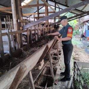 Pesisirnasional.com|Bengkalis – Babinsa Koramil 01/Bkls Kopda Limbong Anggota Koramil 01/Bengkalis Melaksanakan pengecekan hewan ternak dalam rangka mencegah penyakit PMK pada hewan ternak yang bertempat di Desa Pangkalan Batang Kec. Bengkalis Kab. Bengkalis. Kamis pukul 10.20 Wib, (17/7/2025).