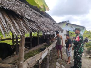Pesisirnasional.com|Bantan – Babinsa Koramil 01/Bengkalis Kopda Budi Nursalim melaksanakan pengecekan hewan ternak dalam rangka mencegah penyakit PMK pada hewan ternak yang bertempat di desa Bantan Tua Kec. Bantan Kab. Bengkalis. Sabtu pukul 10.00 Wib, (6/9/2015).