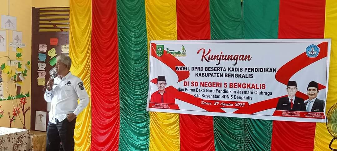 Didalam sambutannya Kepala SDN 5 Bengkalis Rahmad, MPd menyampaikan rasa terima kasihnya atas kunjungan yang dilakukan oleh Wakil Ketua DPRD Bengkalis Syofian, SPdi, MSi disekolah kami ini, semoga kehadiran Wakil Ketua DPRD Bengkalis bisa memeberikan semangat kepada kami semuanya, sehingga di kesempatan ini bisa kami menyampaikan apa yang menjadi kendala disekolah kami ini ucap Rahmad. Di kesempatan ini juga kami menyampaikan rasa sedih kami atas berakhirnya masa tugas dari salah seorang guru kami yaitu wati guru pendidikan jasmani, olahraga dan kesehatan yang hari ini kami adakan acara perpisahan purna bakti guru kami tersebut. Harapan kami guru yang purna bakti ini walaupun tidak mengajar lagi namun terus berikan kami semuanya semangat dan kunjungi kami saat ada kesempatan ucap Rahmad menutup sambutannya.