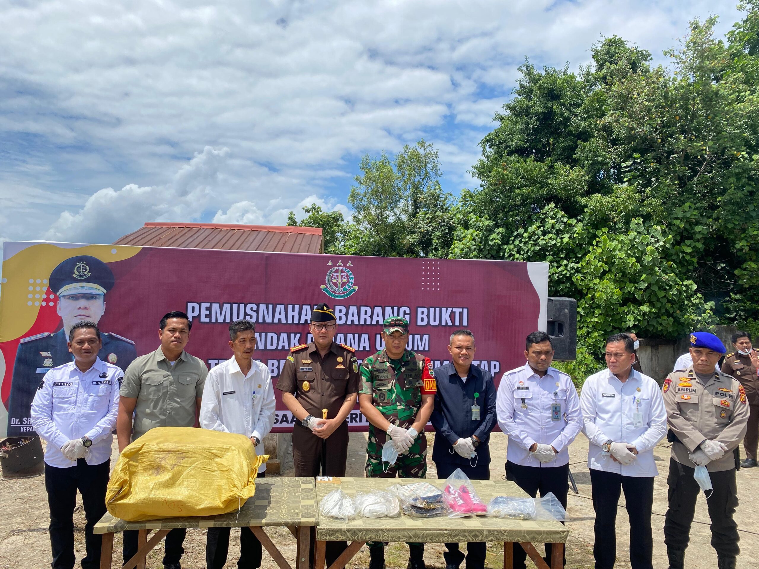 Pesisirnasional.com|Bengkalis – Dandim 0303/Bengkalis Letkol Arh Irvan Nurdin S.E,.MM Menghadiri Pemusnahan Barang Bukti oleh Kejaksaan Negeri Bengkalis Bertempat di Halaman Belakang Kedai Kopi Citra jalan Sudirman Bengkalis. Kec.Bengkalis Kab.Bengkalis Rabu pukul 10.30 Wib, (16/10/2024).
