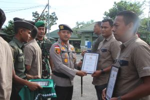 Dalam kesempatan pagi ini Kapolres Bengkalis AKBP Setyo Bimo Anggoro dalam sambutannya menyampaikan rasa terima kasih dan apresiasi kepada Prajurit Kodim 0303/Bengkalis yang telah berhasil melakukan penggalangan kepada masyarakat dalam menggagalkan peredaran narkoba jenis Shabu jaringan Internasional sebanyak 4Kg. Sebagaimana diketahui bahwa Pulau Bengkalis ini merupakan akses pintu masuk barang narkotika yang sangat besar, maka dari itu kita TNI dan Polri harus bersinergi dan berkesinambungan dalam memerangi peredaran Narkoba. Saya juga meminta untuk Prajurit/anggota yang berada di wilayah baik Babinsa dan Bhabinkamtibmas agar dapat memberikan informasi, bekerja sama galang masyarakat agar dapat bisa memberikan informasi demikian inti dari sambutan yang disampaikan oleh Kapolres Bengkalis AKBP Setyo Bimo Anggoro dalam Apel bersama Kodim 0303/Bengkalis dan Polres Bengkalis dalam rangka pemberian penghargaan terhadap Prajurit yang berprestasi pagi hari ini.