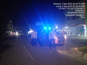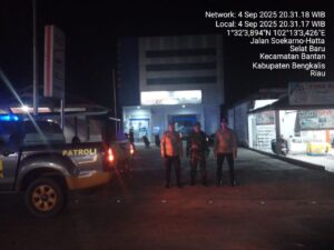 Pesisirnasional.com|Bantan – Babinsa Koramil 01/Bengkalis Sertu Armansyah bersama empat orang anggota polsek melaksanakan kegiatan *Patroli Gabungan TNI dan POLRI Sinergitas Keamanan wilayah Tahun 2025* yang dilaksanakan di Polsek Bantan jalan Soekarno Hatta Desa Selat Baru Kec. Bantan Kab. Bengkalis. Kamis pukul 20 .00 Wib, (4/9/2025).