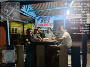 Pesisirnasional.com|Bengkalis – Babinsa Koramil 01/Bengkalis Peltu Dedek Irwanto Dan Kopda Aritonang melaksanakan kegiatan Patroli Gabungan bersama dan Ormas (Tokoh Pemuda, Linmas dan Masyarakat) dalam rangka Patroli Siskamling diwilayah Koramil 01/Bengkalis bertempat di Kelurahan Rimbas sekampung Kecamatan Bengkalis Kabupaten Bengkalis. Senin pukul 21.00 Wib, (12/1/2026).