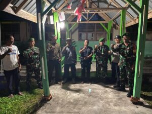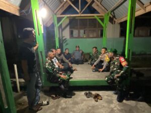 Pesisirnasional.com|Bantan – Patroli Mitigasi TNI, POLRI , Linmas, Masyarakat dan Pemuda Setempat dalam rangka Patroli Mitigasi Siskamling diwilayah Pos Ramil Bantan bertempat di Desa Ulupulau Kecamatan Bantan Kabupaten Bengkalis. Sabtu pukul 21.00 Wib, (27/9/2025).