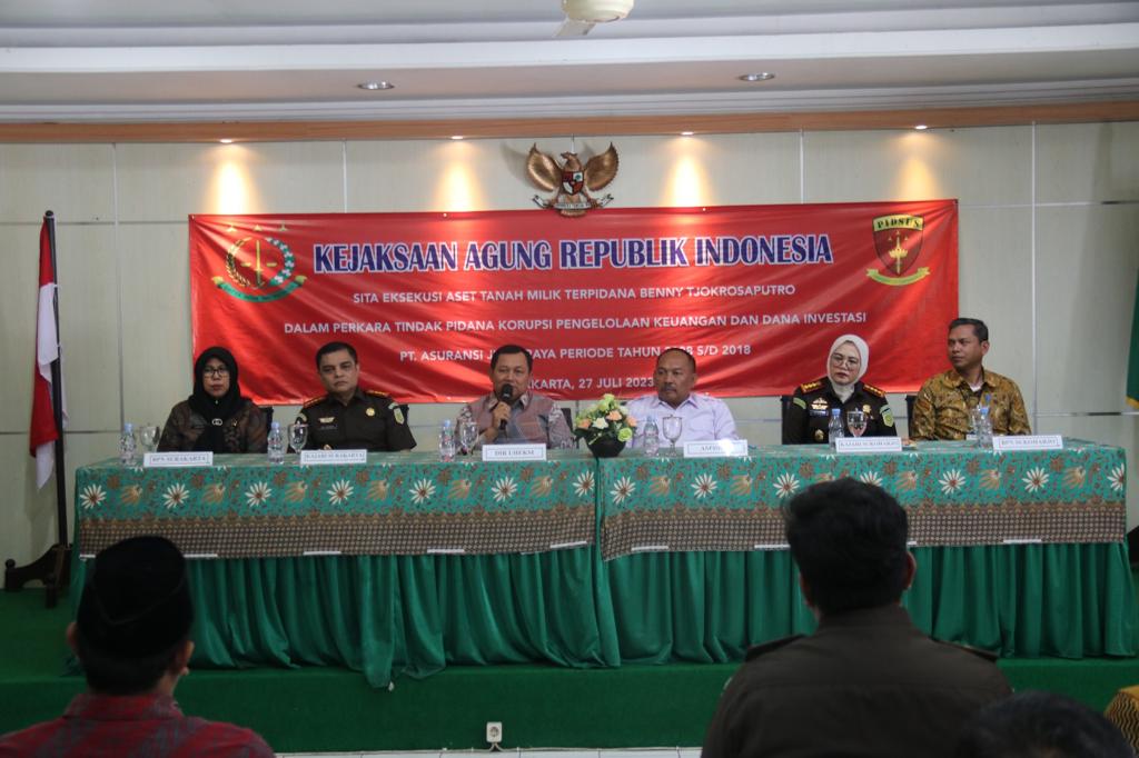 Jakarta – Bertempat di Kantor Kejaksaan Negeri Surakarta, Kamis (27/7/2023) telah dilakukan pengendalian eksekusi berupa penitipan aset sita eksekusi milik dan/atau pihak terafiliasi dengan Terpidana BENNY TJOKROSAPUTRO, dalam perkara tindak pidana korupsi pengelolaan keuangan dan dana investasi oleh PT Asuransi Jiwasraya (persero) periode 2008-2018.