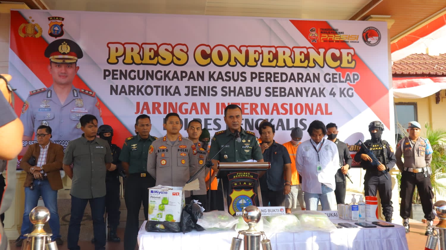 Saya Letkol Inf Endik Yunia Hermanto Komandan Kodim 0303/ Bengkalis menerangkan bahwa benar pada hari Rabu tanggal 26 Juli 2023 sekira Pukul 09.00 WIB, Personel Kodim 0303/ Bengkalis telah berhasil melakukan upaya Penggagalan dalam Pengiriman yang di duga 4 kg Narkoba jenis sabu-sabu dengan dikelabui yang dibungkus dengan 5 ikat buah rambutan dan Kantong Teh Hijau.