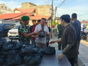 Pesisirnasional.com|Bengkalis – Personil Koramil 01/Bengkalis Dpp Sertu Amroni,PSMTI Kab Bengkalis, dan Tiktokers King Sawer bagikan Paket sembako sebanyak 100 paket sembako kepada warga yang kurang mampu dan lansia diwilayah Kabupaten Bengkalis bertempat di jalan Antara Kelurahan Bengkalis Kota Kec Bengkalis Kab Bengkalis Jum’at pukul 17.00 Wib, (18/4/2025).
