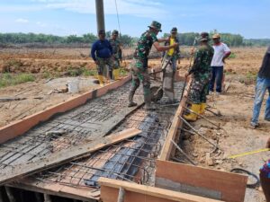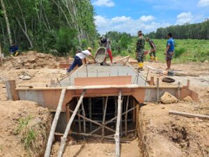 Pesisirnasional.com|BATHIN SOLAPAN – Pembuatan box culvert bervolume 6m × 2m × 1,5m di jalan Sejahtera desa Sebangar, Kecamatan Bathin Solapan sempena program TMMD ke-118 terus digesa, Selasa (26/9).