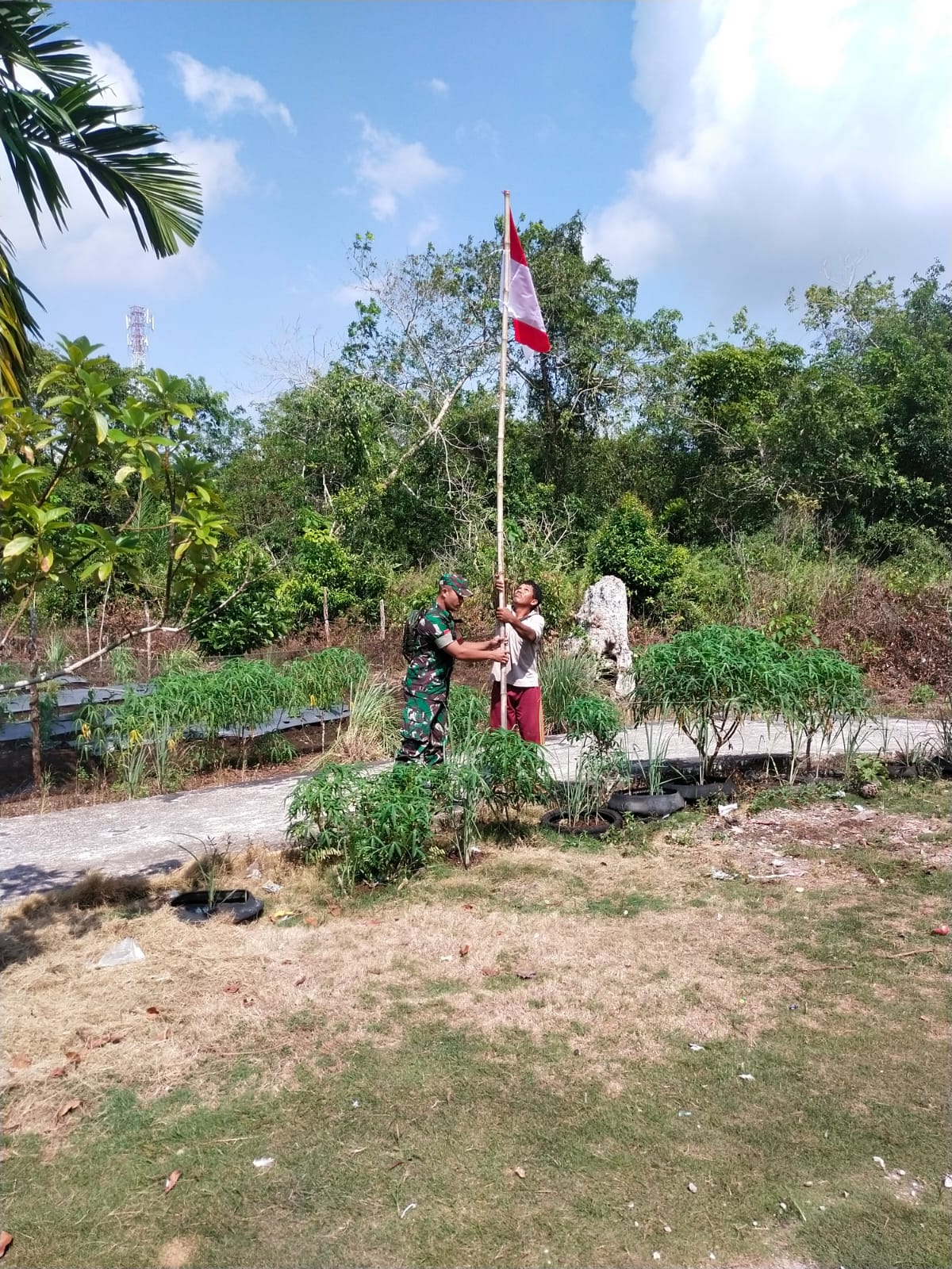 Pada hari Sabtu tgl 5 Agustus 2023 pukul 09.00 Wib Babinsa Koramil 01/Bengkalis Pratu T.Silaban melaksanakan pemasangan bendera Merah Putih di rumah warga desa binaan Kampung Pancasila khususnya di Desa Pambang Baru Kec.Bantan Kab. Bengkalis.