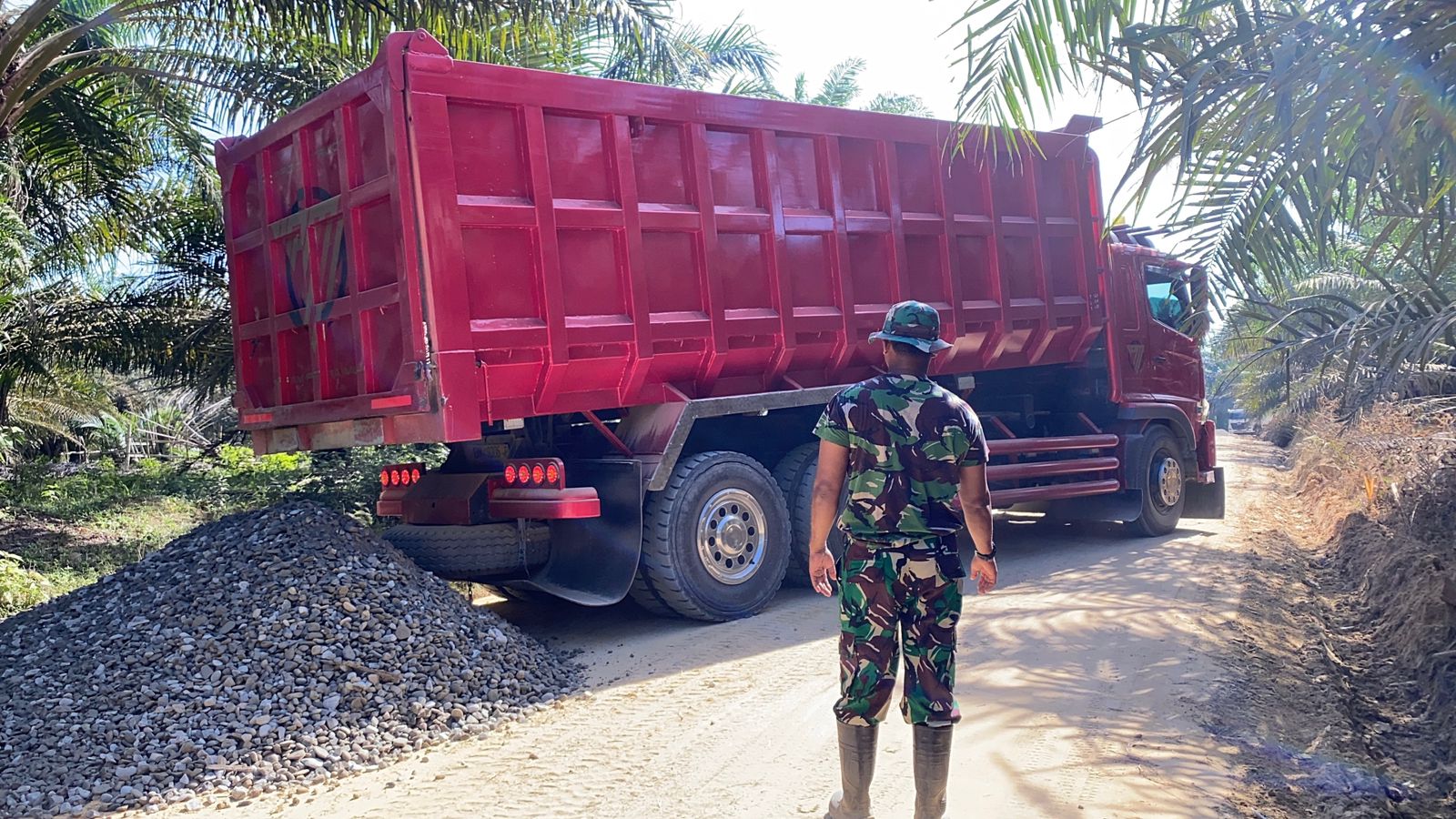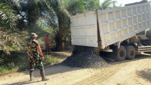 Pesisirnasional.com|Bengkalis — Satuan Tugas (Satgas) TNI Manunggal Membangun Desa (TMMD) ke-124 Kodim 0303/Bengkalis kembali menunjukkan komitmennya dalam mendukung pembangunan infrastruktur pedesaan. Pada hari ini, Satgas TMMD melaksanakan penurunan material untuk pengerasan jalan di lokasi sasaran fisik kegiatan TMMD tahun 2025. Rabu (14/5/2025).
