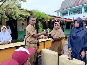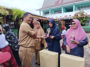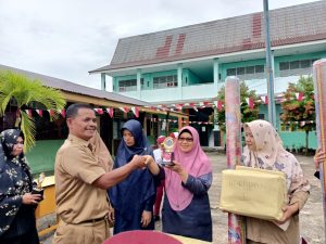 Dalam penyerahan hadiah kepada pemenang lomba Kebersihan, penataan dan pojok baca antara kelas SDN 5 Bengkalis Guna menginspirasi semua warga belajar Sempena HUT RI Ke 78 Tahun 2023 yaitu kepsek SDN 5 Rahmad, MPd dan Ketua Komite Sekolah diwakilkan kepada pengurus Komite Sekolah SDN 5 Bengkalis R. Zuraida.