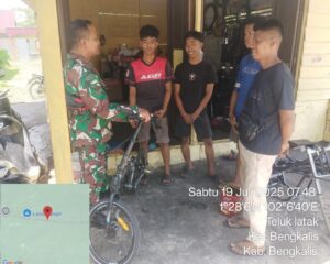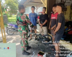 Pesisirnasional.com|Bengkalis – Babinsa Koramil 01/Bengkalis Serda M.H.Gunawan melaksanakan kegiatan komsos bersama masyarakat binaan Desa Teluk Latak di Kampung Pancasila khususnya di Kec. Bengkalis Kab. Bengkalis. Sabtu pukul 09.30 Wib, (19/7/2025).