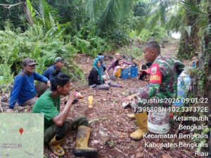 Pesisirnasional.com|Bengkalis – Babinsa Koramil 01/Bengkalis Serka Sinambela melaksanakan kegiatan Komsos dikampung Pancasila desa Sungai Batang Kec.Bengkalis Kab. Bengkalis. Senin pukul 10.00 Wib, (11/8/2025).