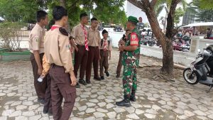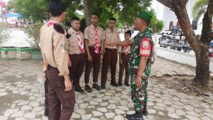 Serka Subarianto Babinsa Koramil 01/Bkls Laksanakan Kegiatan Bersama Anak Pramuka di Kampung Pancasila di Desa Meskom