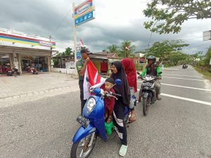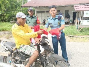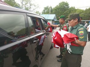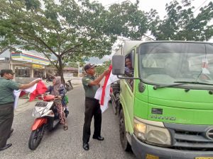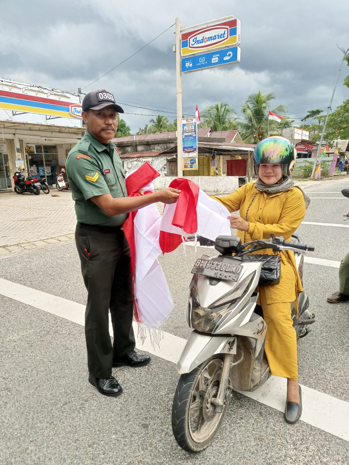 Sertu Mhd Alimran dan 4 anggota Koramil 01/Bkls Laksanakan Pembagian Bendera Gerakan Nasional Pembagian 10 juta Bendera